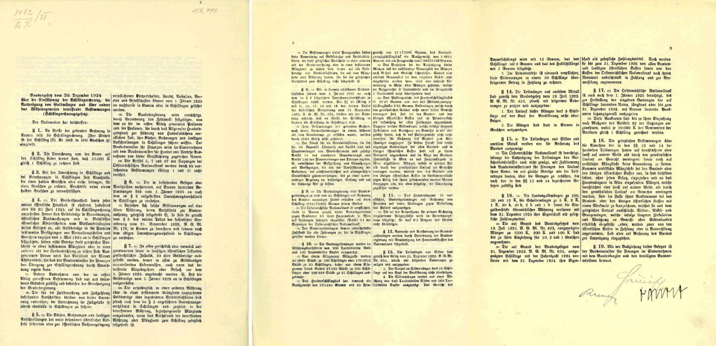 Die Einführung des österreichischen Schillings im Jahr 1925 markierte einen bedeutenden Wendepunkt in der österreichischen Wirtschaftsgeschichte und fand ihren rechtlichen Rahmen im Schillingrechnungsgesetz vom 20. Dezember 1924. Dieses Gesetz legte die Grundlage für den Übergang von der der Krone zur neuen Währung, dem Schilling.